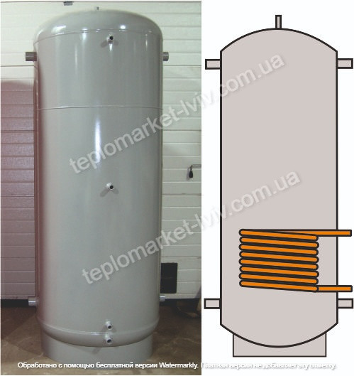 Теплоакумулятор 1000л без утеплення, змійовик під сонце, буферна ємність